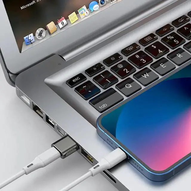 18W USB to USB C Adapter (2 Pack), USB A Male to USB C Female Converter for High-Speed Charging, Reliable Data Transfer, Audio Signal Transmission and Carplay - Space Gray Metal Hosing