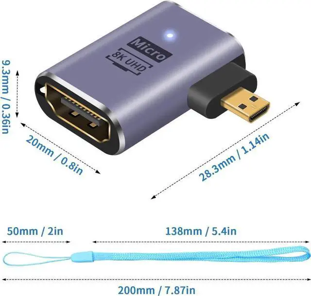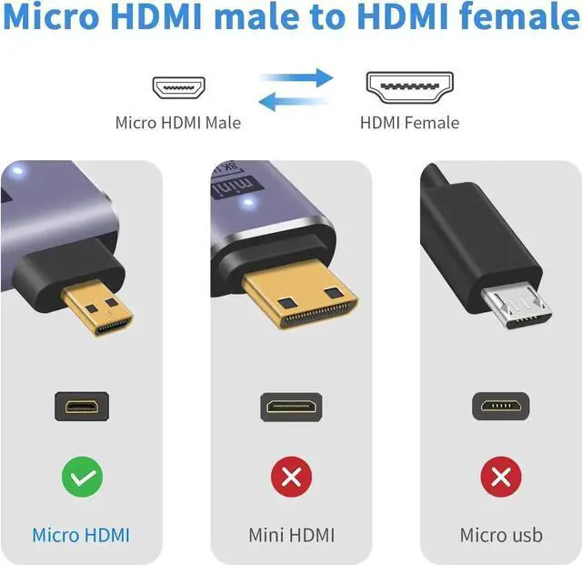 Micro HDMI to HDMI Adapter, 8K HDMI to Micro HDMI Extender, 8K Micro HDMI Extension Adapter