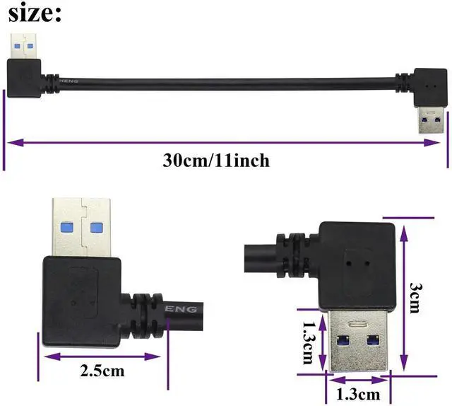 Connectors 1&2 : 90 degree USB 3.0 A male jack cable (Charging & Data Transfer two in one)