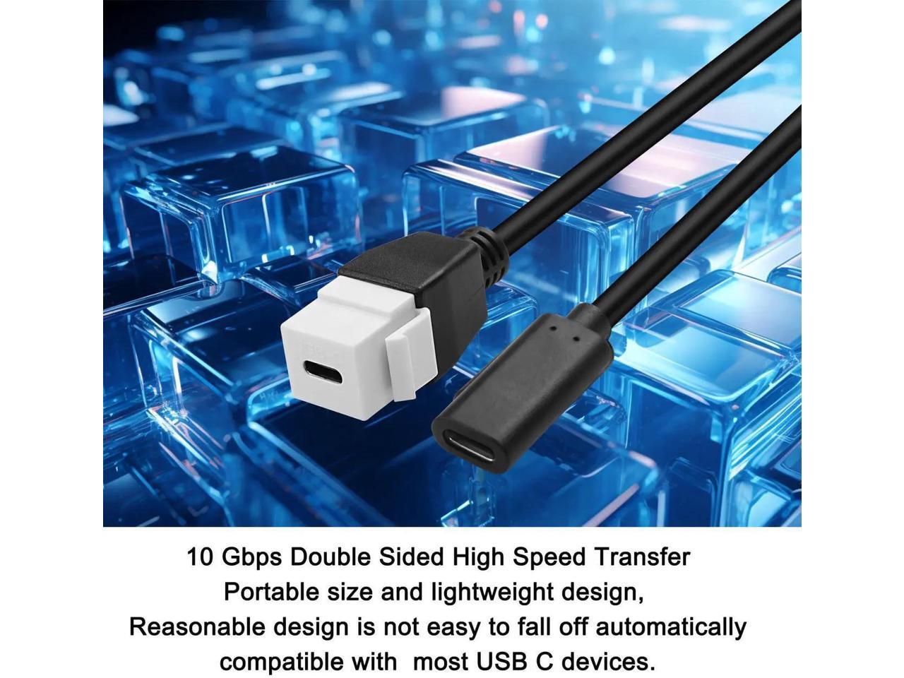 - The Type c male/female to female keystone insert cable is made of shielded wire with stable performance. High quality PVC wire, soft and flexible, wear resistance, longer service life. The Keystone end is secured to the wall panel or module with a safety buckle, so that it is securely connected to the USB-C port to prevent the port from loosening during charging.
