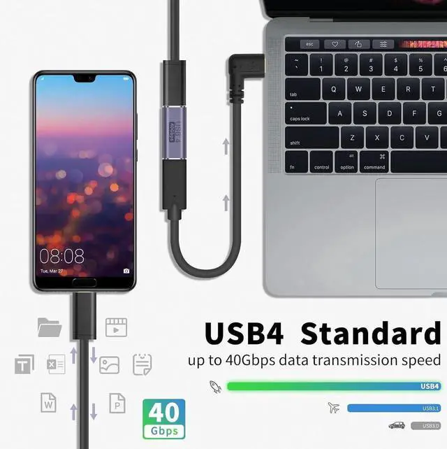 40Gbps Data TransferThis USB Type C Coupler is conform to the USB4 adapter. Supports 40Gbps data transmission speed. Transfers movies, music and more in just seconds. Please noticed that the data transmission speed also depends on the USB devices and the cable support or not.