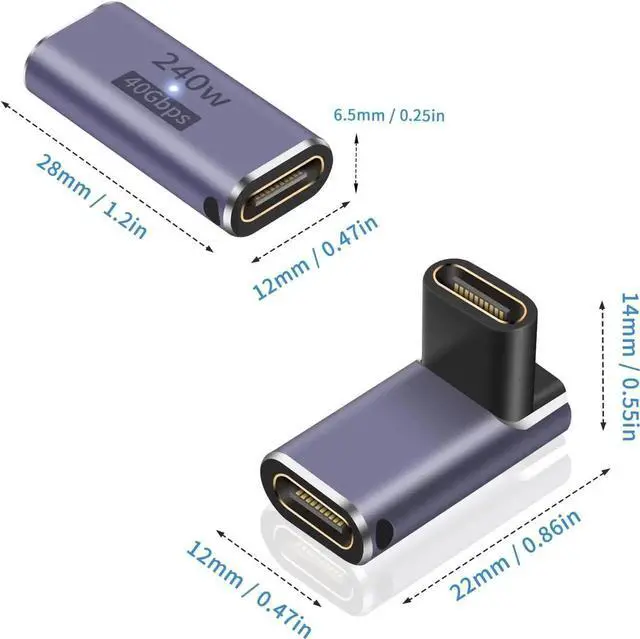 USB C Female to Female AdapterCombo pack of 90 degree usb c adapter with elbow angle easy to avoid the bending places. with Mini-design, Easy to carry. Plug and play. with flexible buckle hole, easy to match with your lanyard and keychain. with unique LED Light design is perfectly to displaying the devices of charging status.