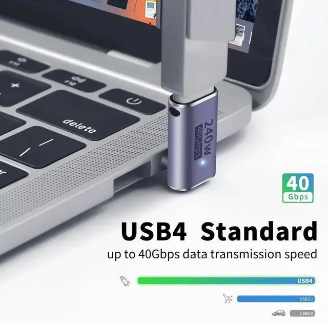 USB C Adapter 40Gbps: meets the USB 4 standard, that is up to 40Gbps data transmission speed. Transfers movies, music and more in just seconds. Please noticed that the data transmission speed also depends on the USB devices and the cable support or not.