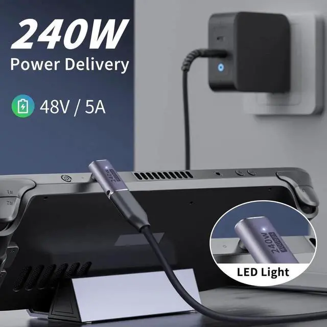 240W USB C 90 Degree Adapter: The USB C adapter can realize the maximum 48V/5A, 240W USB power delivery, providing your device with the fastest possible charging.