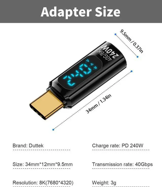 [Supports 240W Fast Charging] The USB C to USB C adapter can achieve a maximum power transmission of 48V/5A, 240W, providing the fastest charging speed for your devices. It supports multiple fast charging protocols including PD 3.1 /QC 3.0 /PPS/EPR240W/PD100W/SCP/AFC