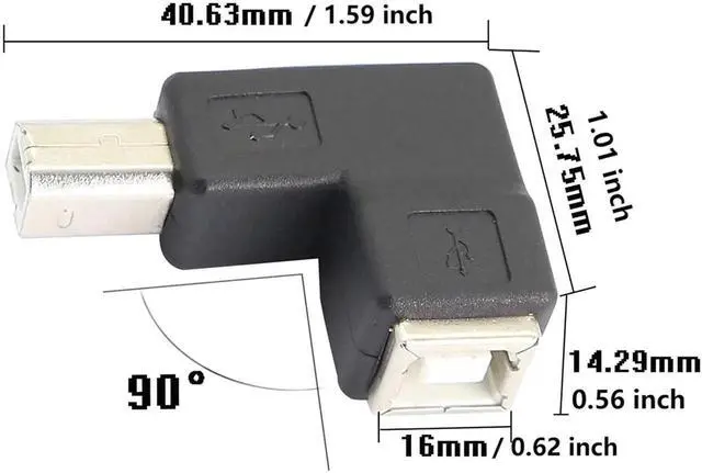 Package Contents:2 pcs left angle USB B Male to Female adapter.