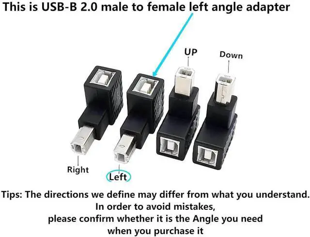 Reminder: There are four different angle products in this series of adapters. Please correctly distinguish the angle of the USB 2.0 Type B Printer Adapter you need before purchasing, thank you.