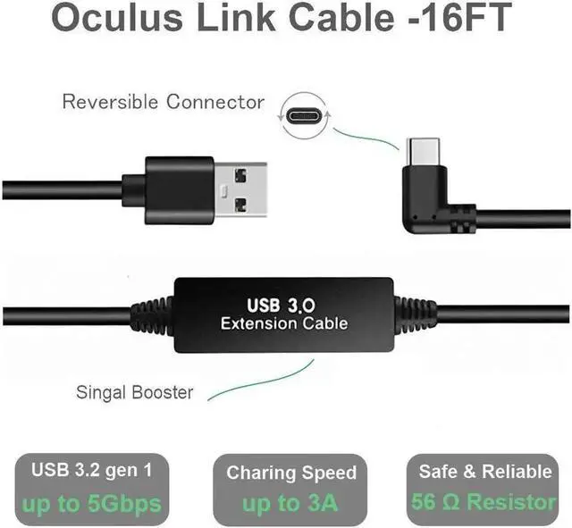 ACTIVE USB EXTENSION This Oculus quest headset cable features signal booster design with built-in NXP chip which perfectly avoid attenuation for long-distance data transfer.