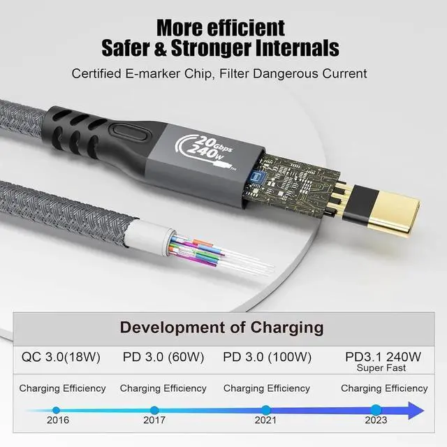 • 240W fast charging cable: this USB C 3.2 Gen - 2 cable can support a maximum load of 240 W 48 V/5 A. When your USB - C device is in use, it will provide power supply. To ensure charging speed, use the original adapter that matches your device