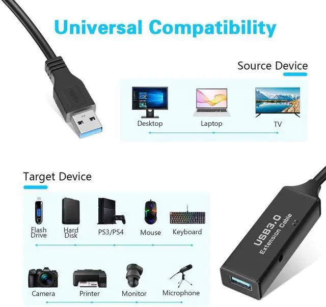 USB 3.0 Active Data Long Cord: This New Length and Upgrade USB 3.0 Data Connector Wire allows you to extend the USB device connection by 16 feet, no longer worrying about the distance.