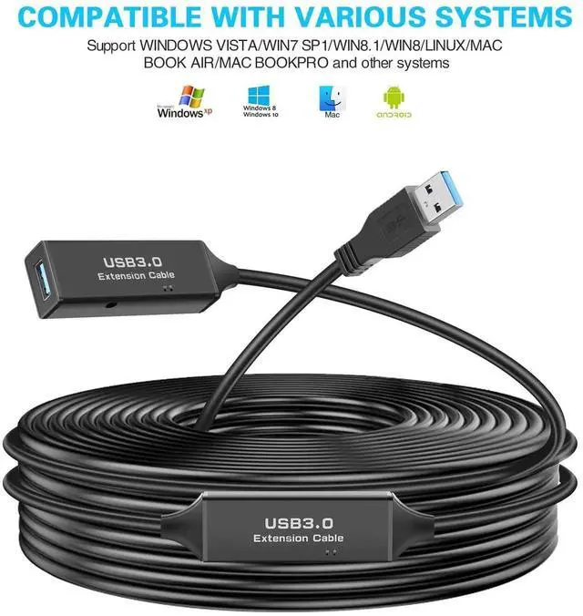 USB 3.0 Active Data Long Cord: This New Length and Upgrade USB 3.0 Data Connector Wire allows you to extend the USB device connection by 32.8 feet, no longer worrying about the distance.