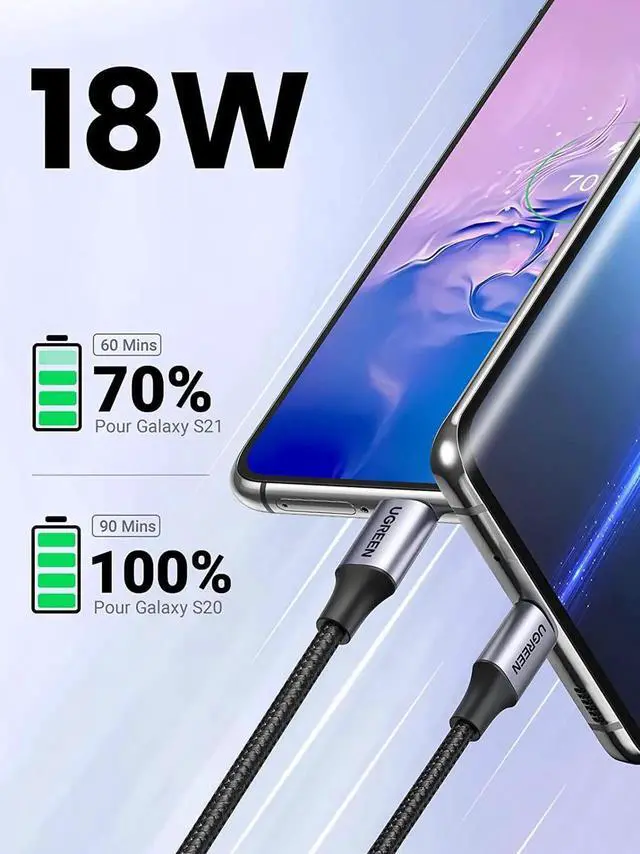 UGREEN USB to USB C Cable, Car Carplay Cable USB A to Type C Cable Fast Charging Braided USB C Cord Compatible with iPhone 16/16 Plus/16 Pro/15, SAM-SUNG Galaxy S24/S23, Pixel 8/7, 10FT