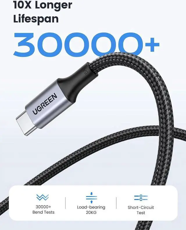 Fast Charging: The UGREEN USB C cable supports 100W fast charging with PD 3.0 and QC 3.0 technology to quickly charge iPhone 15 to 60% in just 30 minutes. Backwards compatible with 65W/45W/30W/20W chargers