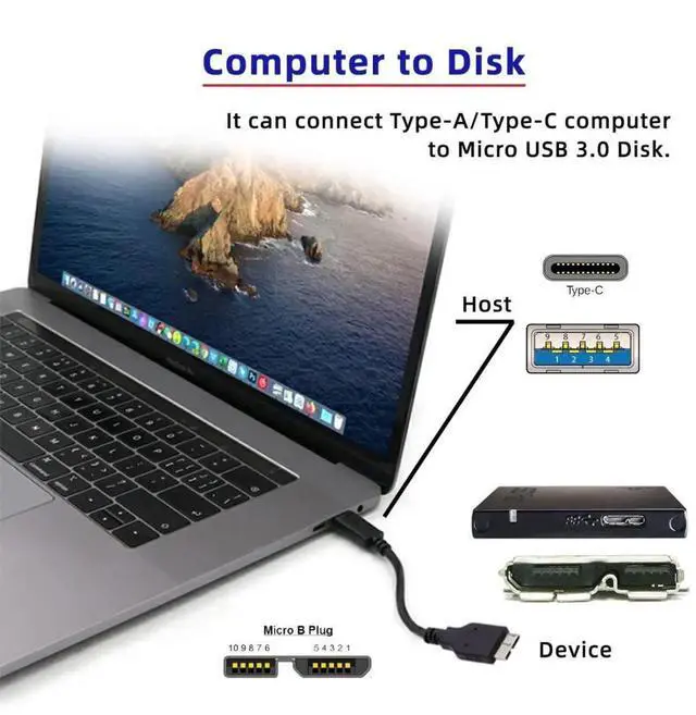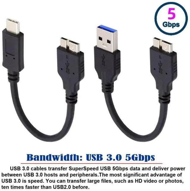 USB 3.1 USB-C Type-C to Micro 3.0 and USB 3.0 Type-A Male to Micro 3.0 B Male Disk SSD Data Cable 2pcs/set.