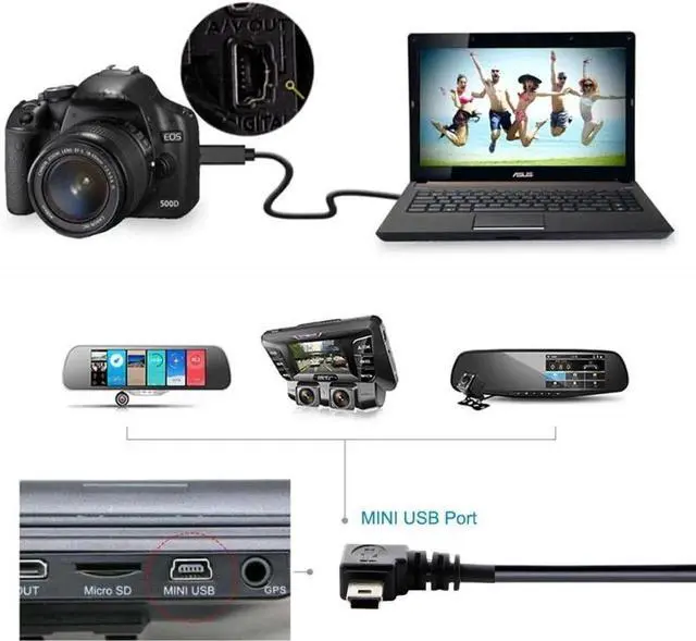 Mini USB Cable USB 2.0 Male to Mini USB 5 Pin Male 90 Degree Left Angled Charging Data Transfer Extension Cable 5.0M