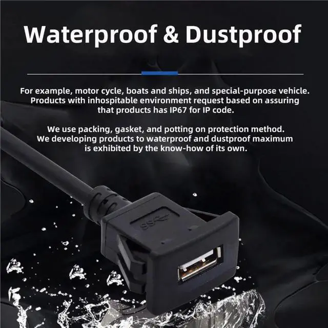 It features a waterproof panel/dash mount.
