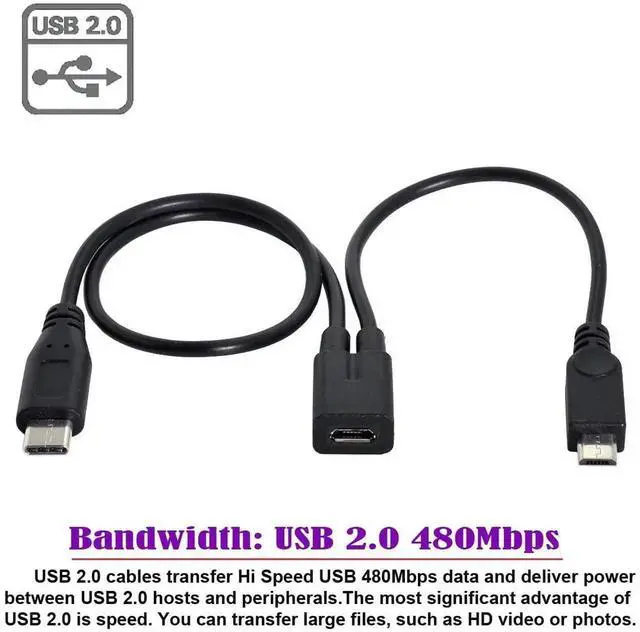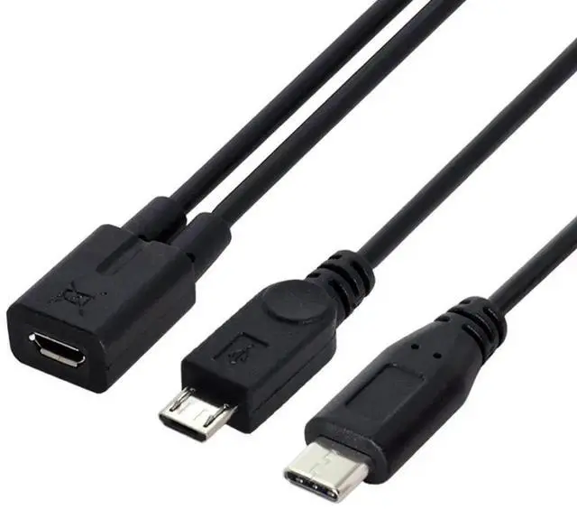Micro USB Female to USB-C Type C USB 3.1 & Micro USB Male Splitter Extension Charge Cable