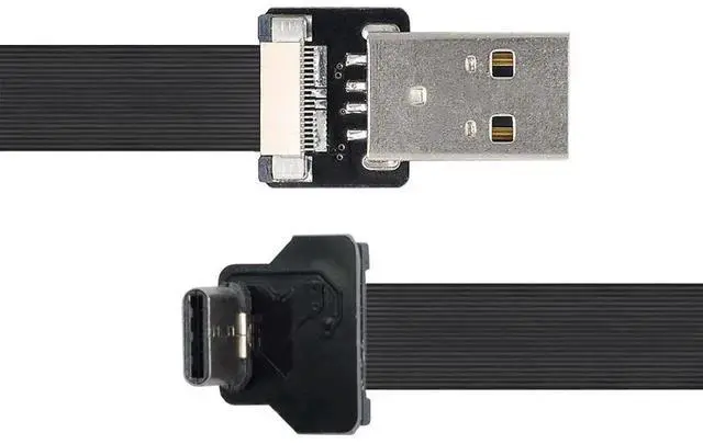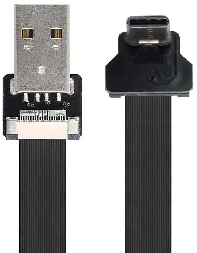 USB C Flat Cable USB 2.0 Male to USB C Male 90 Degree UP Angled Data Transfer Charging Ribbon Flex Extension Cable Adapter 0.2M