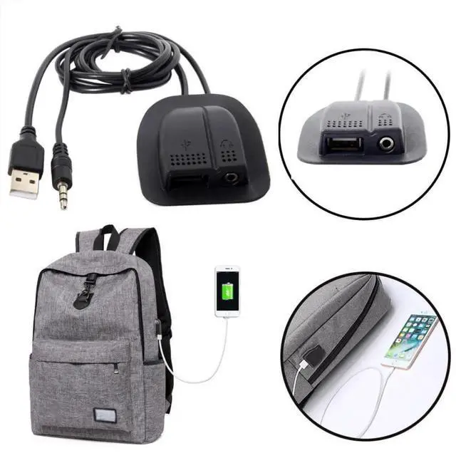 USB 2.0 Type A/Audio 3.5mm Male to Female Backpack Charge Data Extension Cable for Outdoor Travel Camping