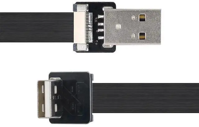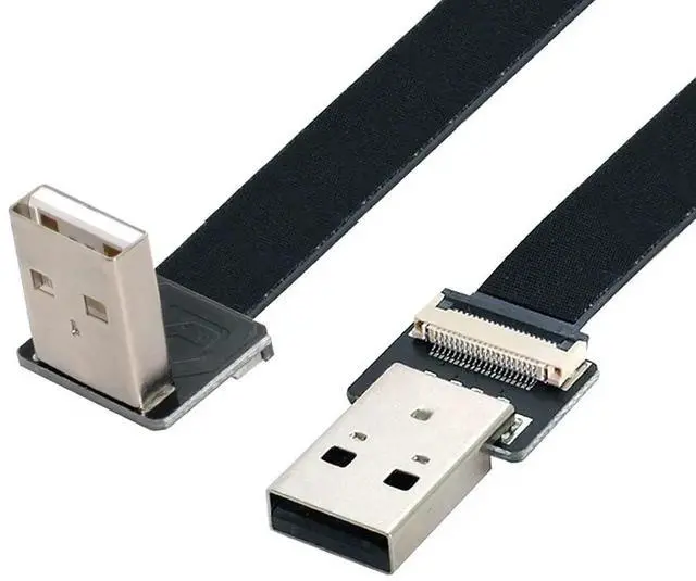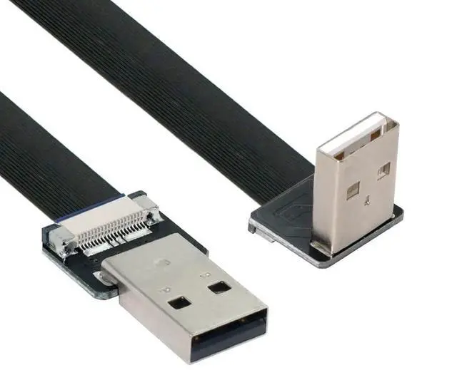 USB 2.0 Flat Cable USB 2.0 Male to Male 90 Degree Down Angled Data Transfer Charging Ribbon Flex Extension Cable Adapter 0.2M