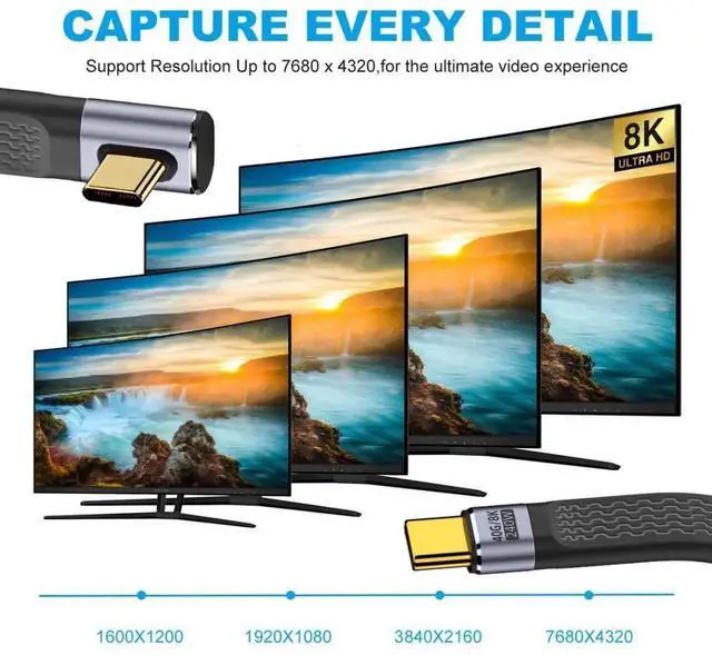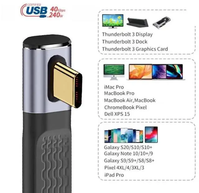 USB C USB4 40Gbps 240W 100W 8K Flat Slim FPC Data Cable Low Profile Angled for Laptop Phone 13cm