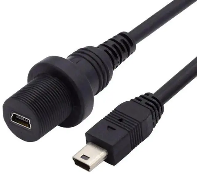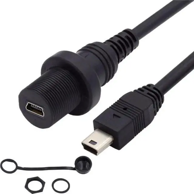 Mini USB Waterproof Cable, Mini USB 2.0 5Pin Male to Female Extension Data Power Waterproof Dustproof Cable for Car Panel Mount Design