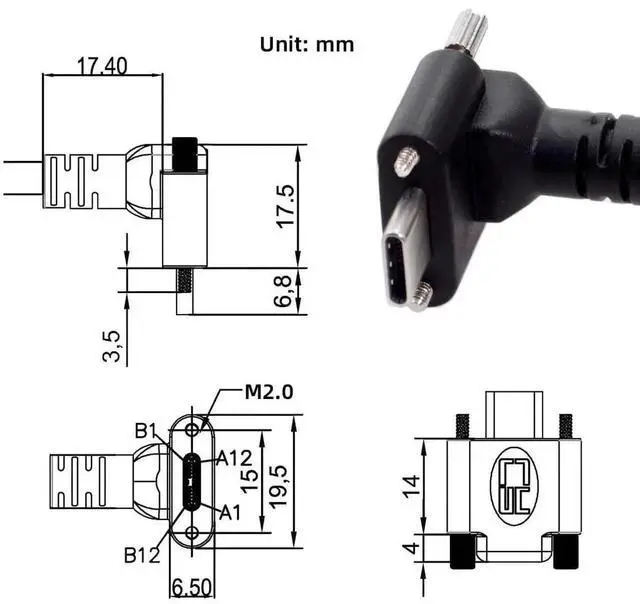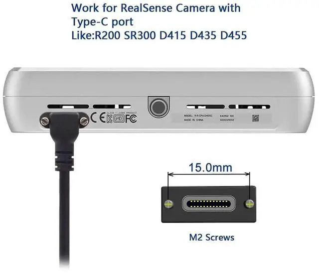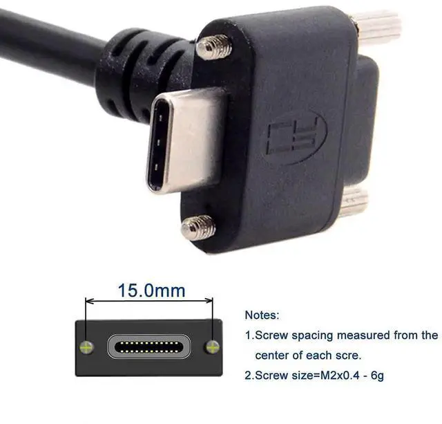 Up Angled USB 3.1 Type-C Dual Screw Locking to Standard USB 3.0 Data Cable 90 Degree for Camera;; Up/Down Angled connector, With Panel Mount locking Screw