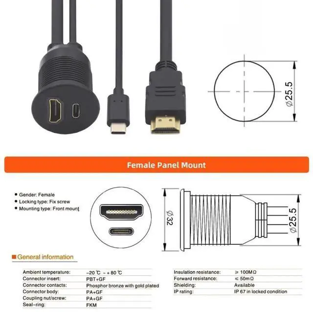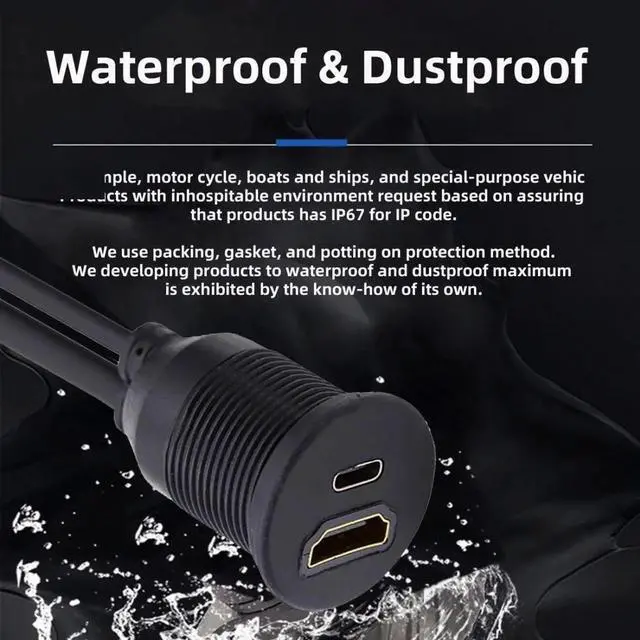 1) It features a waterproof panel/dash mount with rubber cover and extension cable.