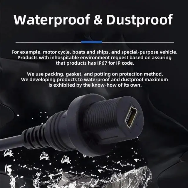 Mini USB Waterproof Cable, Mini USB 2.0 5Pin Male to Female Extension Data Power Waterproof Dustproof Cable for Car Panel Mount Design