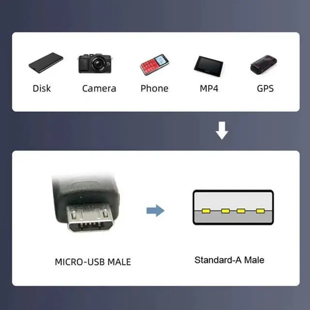 1) The Micro USB connector is Angled Type. The angled type Allowing you to connect it to a female port, even if space around the port is limited.