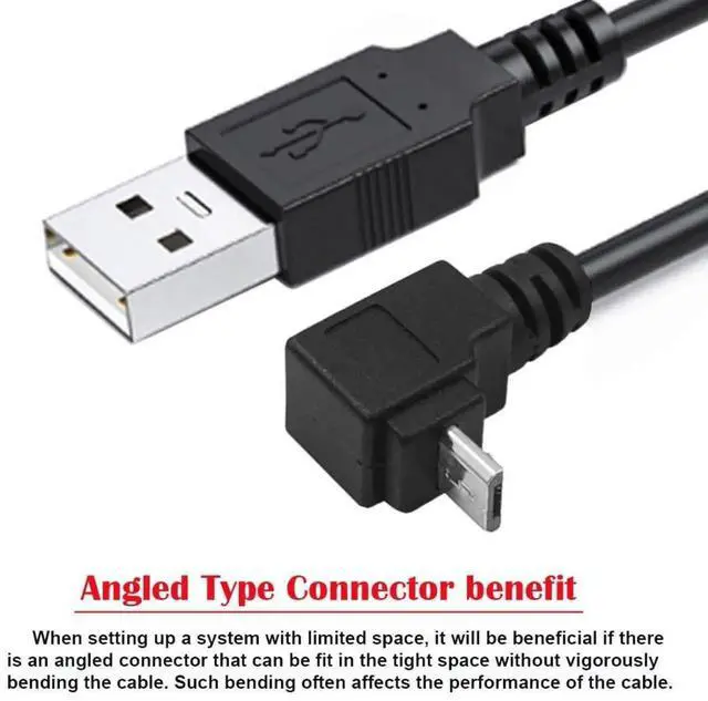 1) The Micro USB connector is Angled Type. The angled type Allowing you to connect it to a female port, even if space around the port is limited.