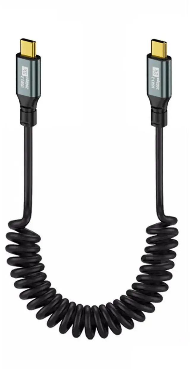 Stretch Coiled USB-C USB4 Cable 20Gbps 100W 8K for Gaming Keyboard Mouse Type-C Male to Male Cable