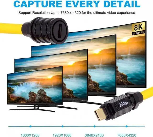 This USB4 Cable enables to connect from your USB4 or thunderbolt3/4 Port equipped Devices to your USB-C Monitors, It supports Single 8K@60hz, 5K@60Hz or 4K@60Hz max. video Resolution in your external displays.(please make sure your monitor's Type-c port support DP Alternate Mode for Video.)