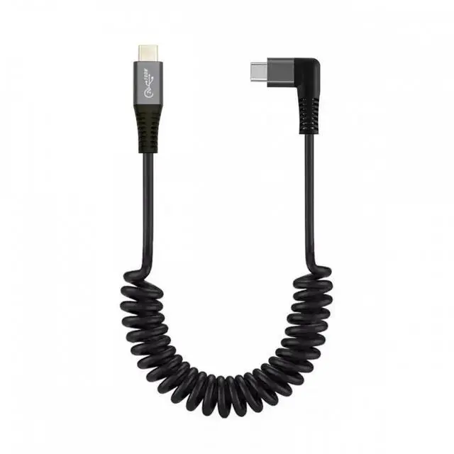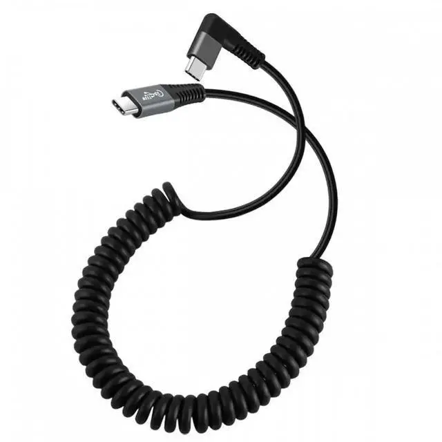 Stretch Coiled USB-C USB4 Cable 20Gbps 100W 8K Type-C Right Angled Male to Male Cable Power Data for Laptop Keyboard Tablet