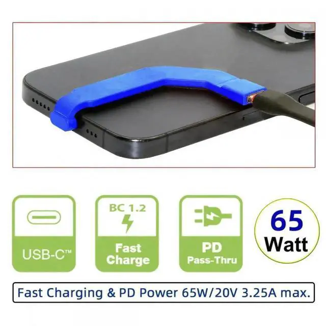 Function: Fast Charging 65W/ 3.25A + Data Transmission USB 2.0 /480Mbps. Hi-speed up to 480Mbps for USB Type-C 2.0 Version, Support two-way data transmission at the same time.