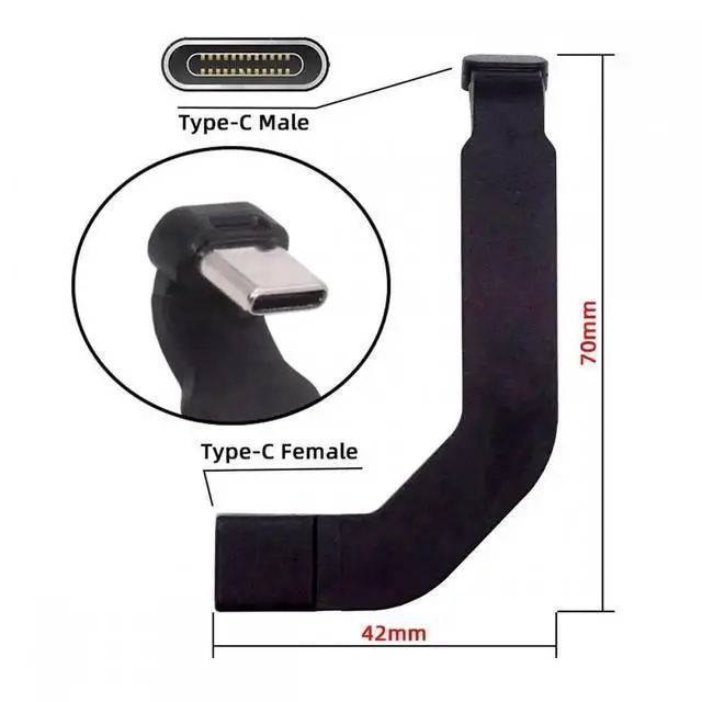 Angled Type-C Male to USB-C Female Extension Ultra Slim Data Cable Connector Protector 65W Fast Charge for Tablet Phone