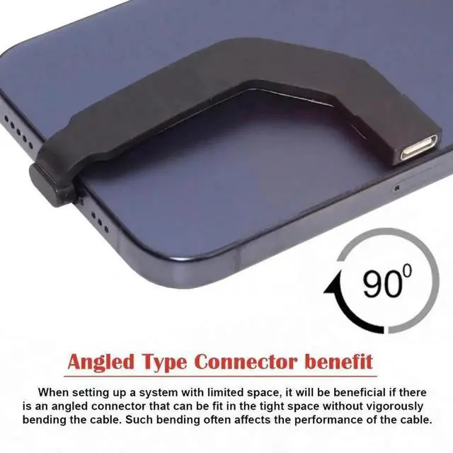 This Angled type Cable Allowing you to connect the cable to a female port, even if space around the port is limited.