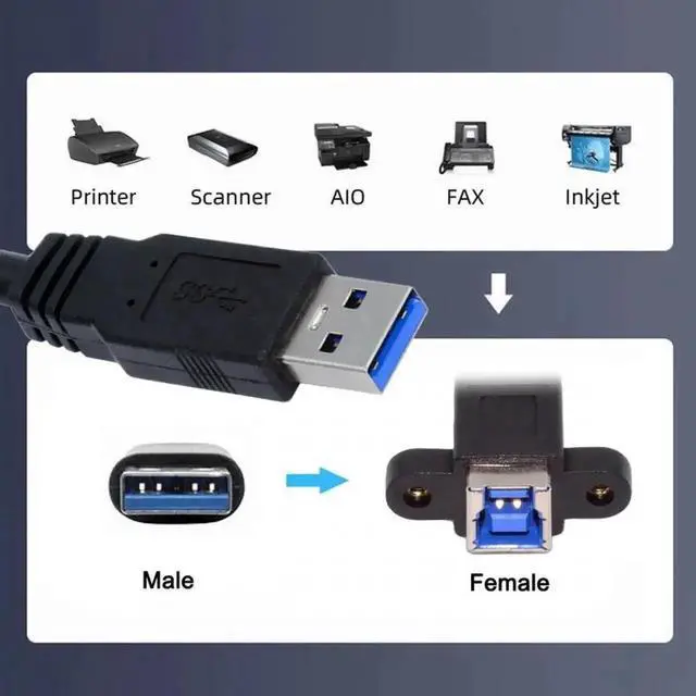 USB 3.0 Type-B Female to USB3.0 Type-A Male Cable Extension 5Gbps for Disk SSD Camera Data 30cm