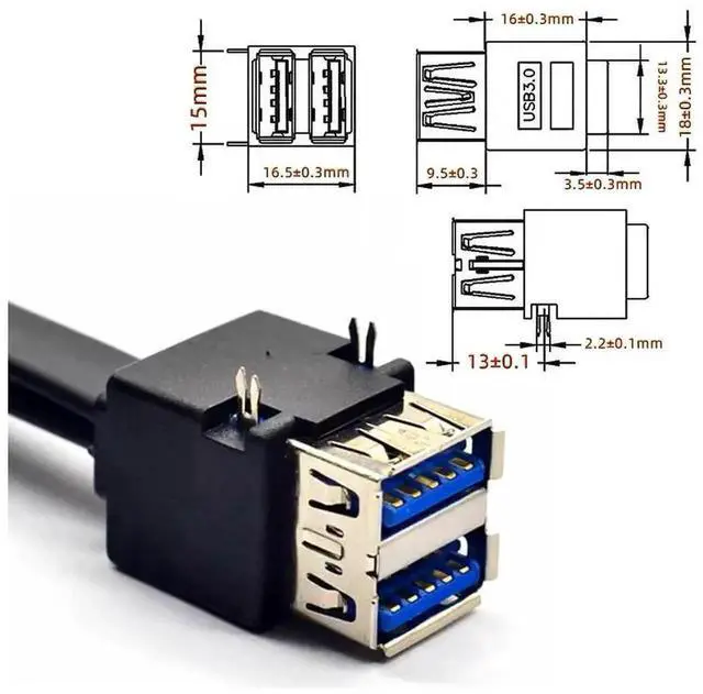 Stackable Dual Port USB 3.0 Female Type-A DIP Type to Motherboard 20Pin 19Pin Header Cable with Fixed Feet 50cm