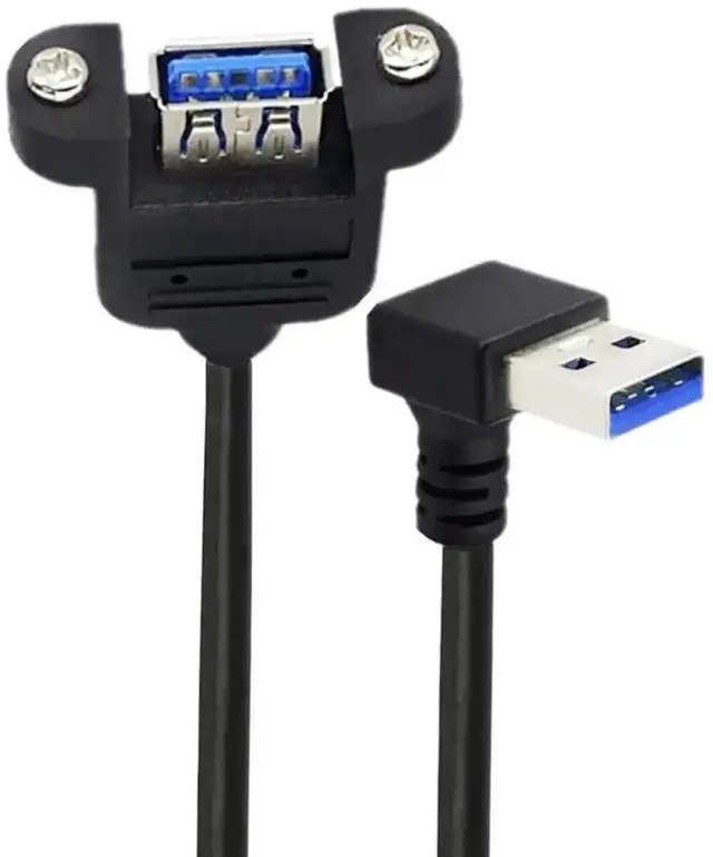 Aomoproing 12 Inch Short USB Extension Cable, USB 3.0 Male to Female 90 Degree Down Angled Panel Mount Type Cable with Screws