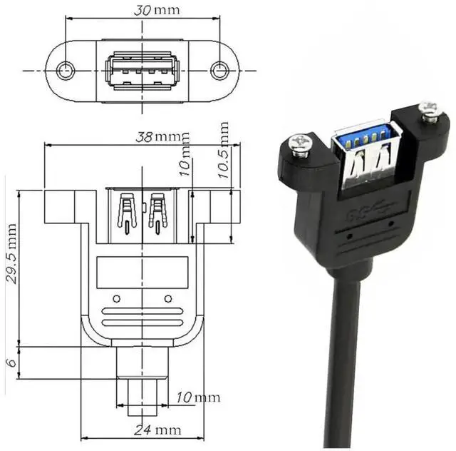 • The total length of the cable is 30cm, and the distance between the two screw holes is 30mm.