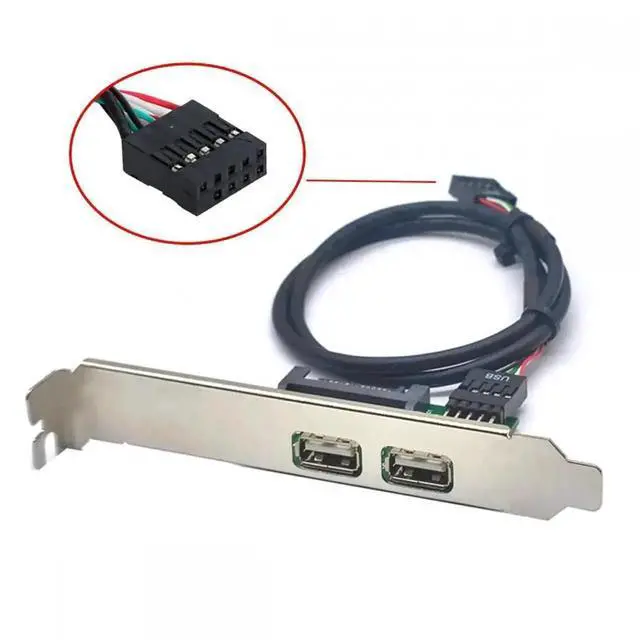 With this cable, you can directly connector motherboard 9pin socket, converted to two usb2.0 socket. You can use USB 2.0 type-A female convert USB2.0 (9pin Header) directly connected to the motherboard.