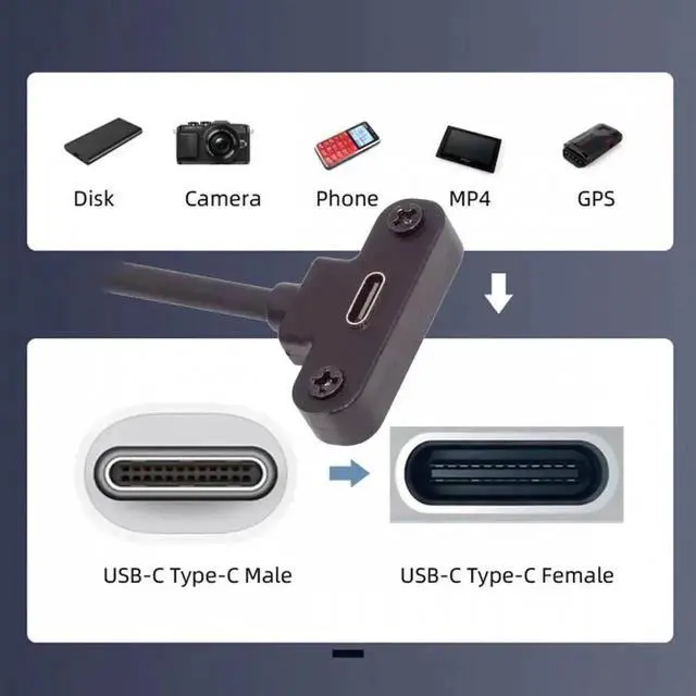 Panel-Mounting: A great solution to continuing your USB-C connection to your cabinet device. Connect your Type-C male cable to the female panel mount to continue your USB-C signal.