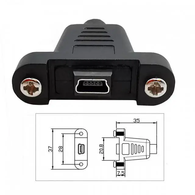 Connector A: Mini USB 2.0 Female Dual Screw-Lock Panel Mount