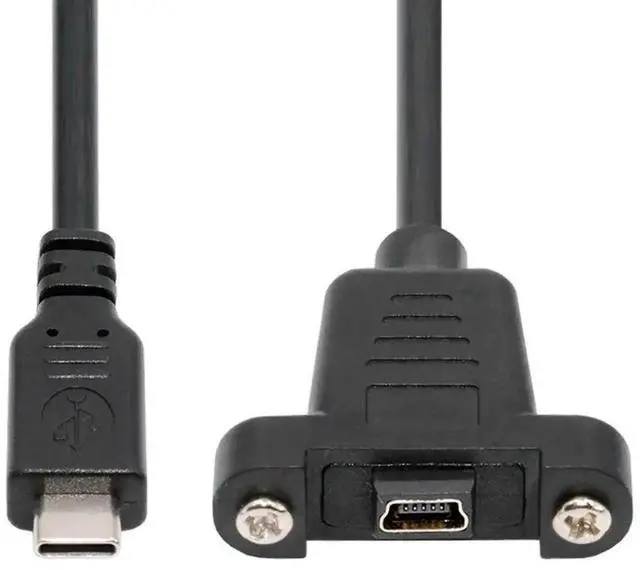 USB 2.0 Mini 5Pin Female to Type-C USB-C Male Power Cable 480Mbps Data with Panel Mount Holes 30cm