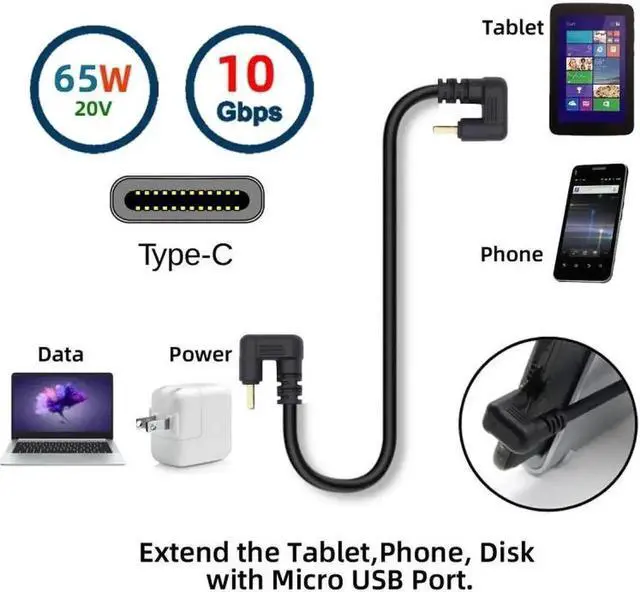 10Gbps USB 3.1 Type C Male to Male Power Data Video Cable USB-C Opposite U Shape Back Angled for NS Switch Phone Laptop