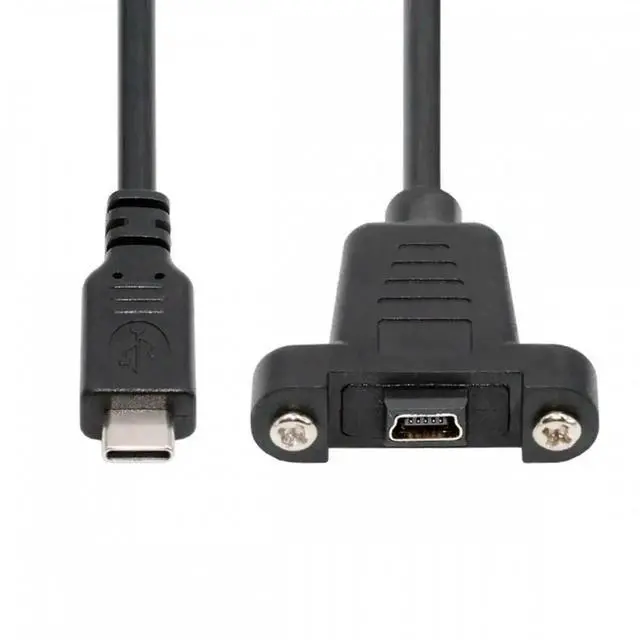 USB2.0 Mini 5Pin Female to Type-C USB-C Male Power Cable 480Mbps Data with Panel Mount Holes 30cm