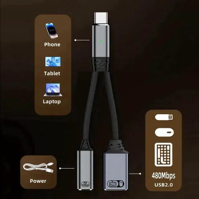USB-C Type-C to 480Mbps USB 2.0 Female OTG 100W PD Power Cable for Laptop Tablet Phone
