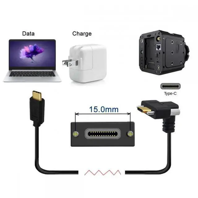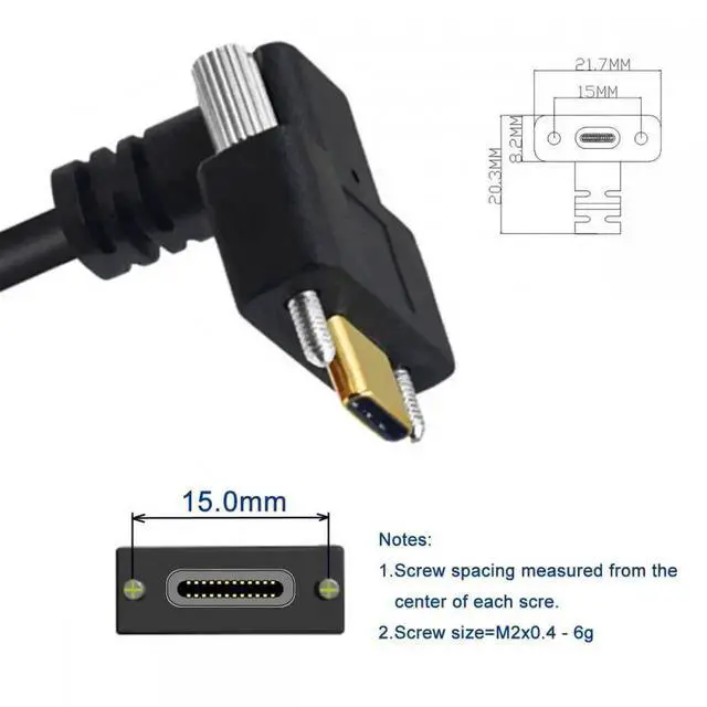 USB 3.1 Type-C Male to Dual Thumbscrew Locking USB-C Vertical 90 Degree Up Down Angled 10Gbps Data Cable Panel Mount Type