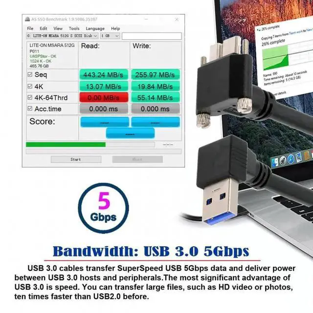 Down Angled 90 Degree USB 3.0 A Male to Micro-B 3.0 Plug Angled Locking Screw Panel Cable 25cm